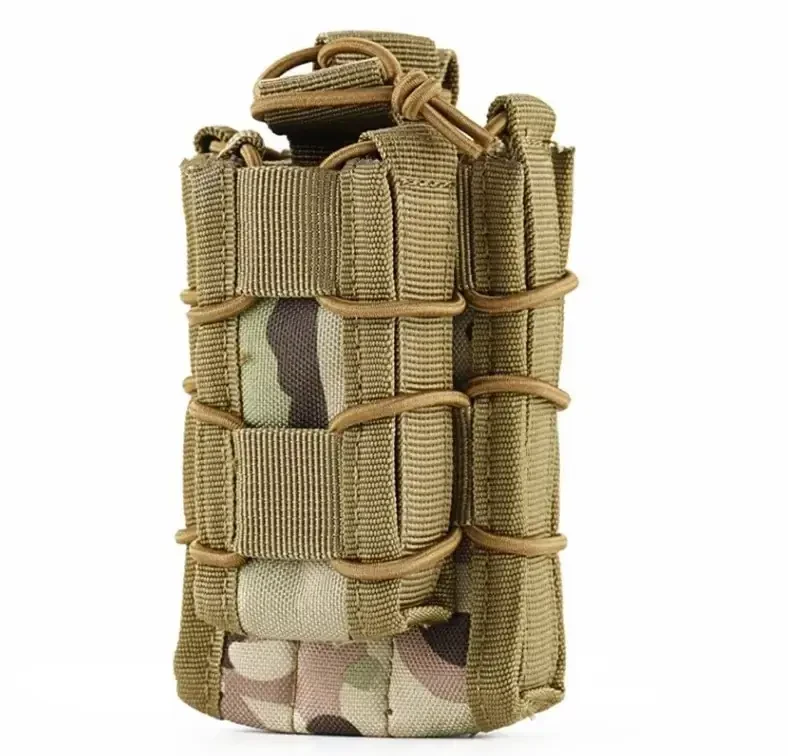 Підсумок Molle для 2-х магазинів АК/AR та пістолета A-21 є здвоєними підсумками для АК-подібного магазинів та пістолетного магазину. Результат для пістолетного магазину не демонтується. Особливості: - Забезпечує надійне утримання та швидкий доступ до магазину. - Джгут, що стягує, є додатковим елементом для утримання магазину, дозволяючи затягнути його на потрібний рівень, для точного балансу між надійністю розміщення магазину і легкістю його вилучення. - Задня сторона підсумка оснащена стропами MOLLE для розміщення на будь-якому іншому тактичному спорядженні або поясному ремені. - Магазини оснащені отворами для монтування страхувального джгута, який може бути докуплений окремо та дозволяє ще надійніше зафіксувати магазин у підсумку. Характеристики: Матеріал: тканина Cordura з забарвленням MultiCam Розміри: 75 х 120 х 35 мм Вага: 150 гр